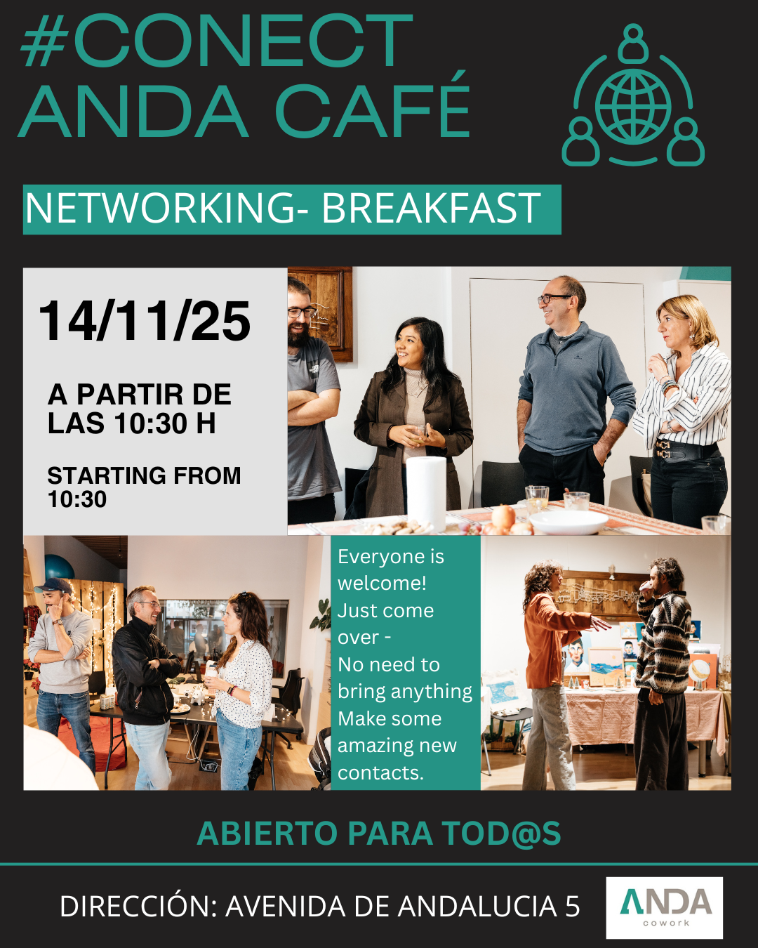 Únete a nosotros el 14 de noviembre a las 10:30 en ANDA para un desayuno de networking en un ambiente relajado.